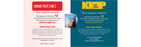 $2 of all sales from each 100 g bag sold of Magical Fruit Tea sold in the United States is donated to Crisis Text Line.